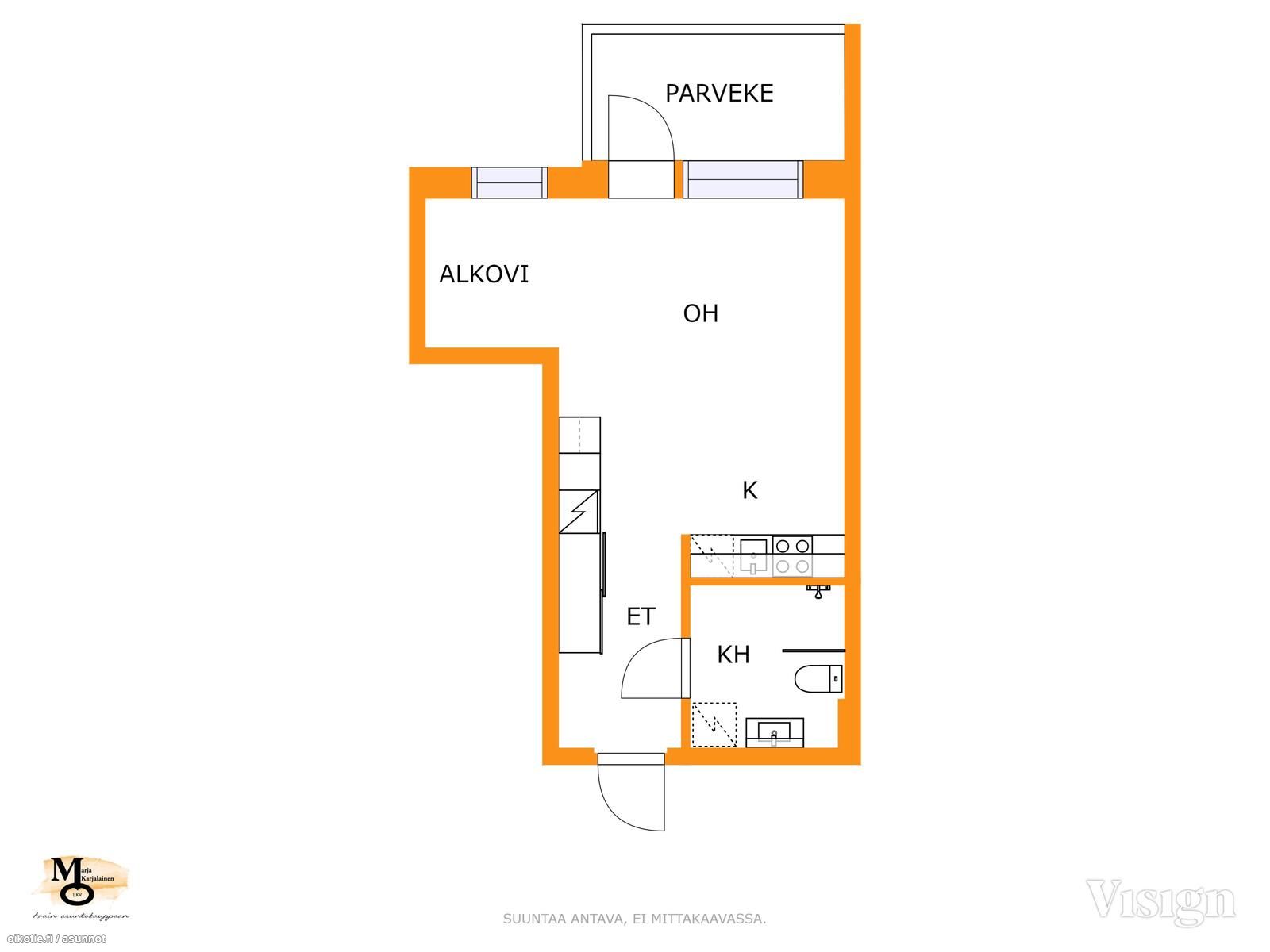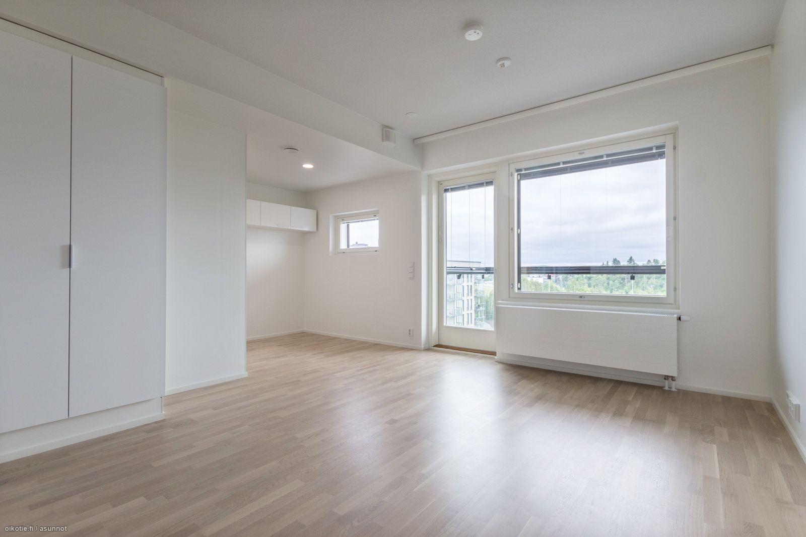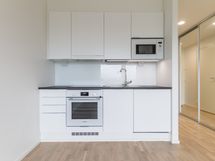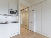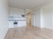 2019 valmistunut 8/12 krs. tilava yksiö ikkunallisella alkovilla ja lasitetulla parvekkeella. Säilytystilaa asuntoon tuo eteisen peiliovikaapistojen lisäksi alimmassa kerroksessa oleva häkkivarasto.