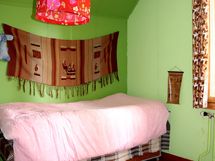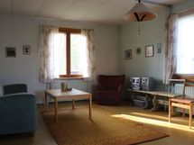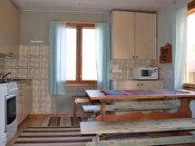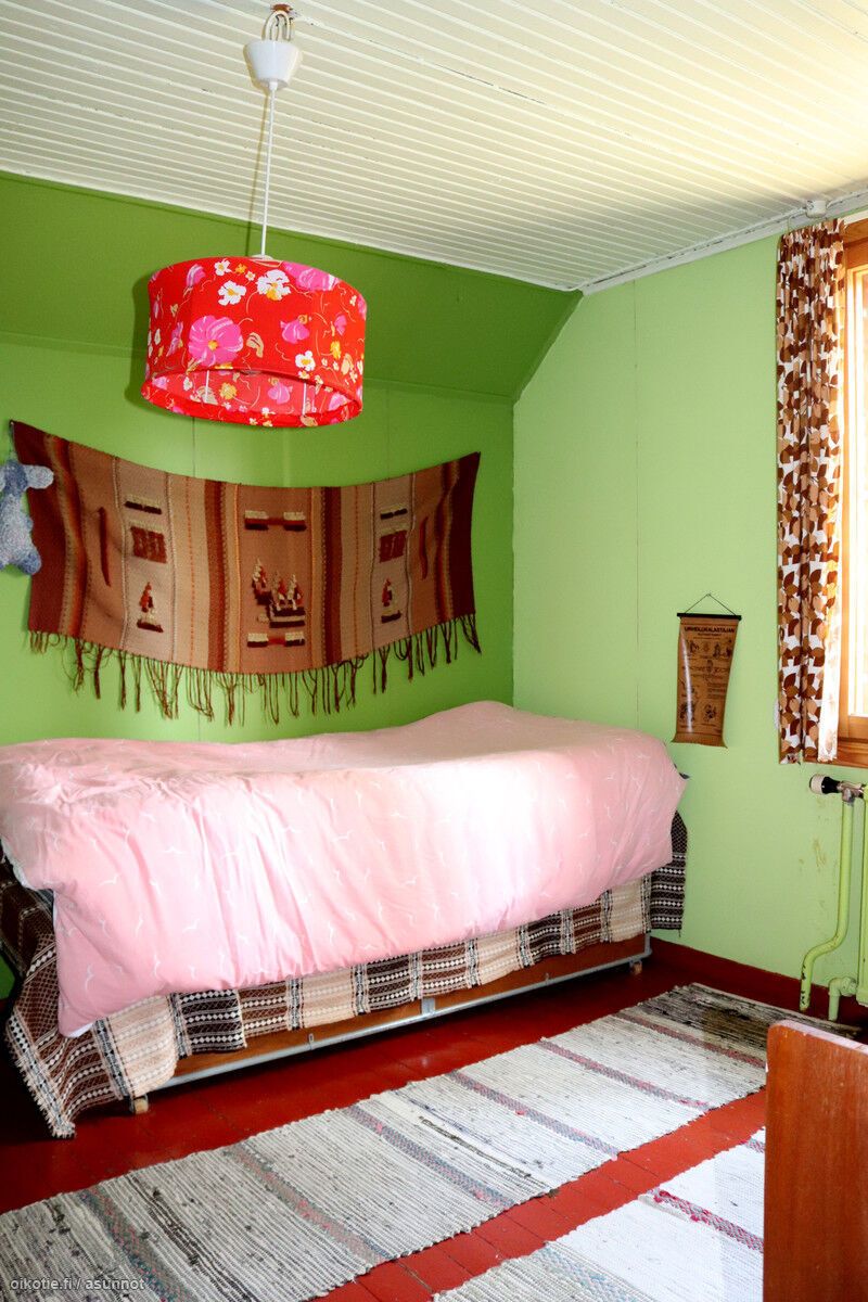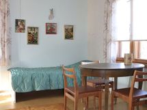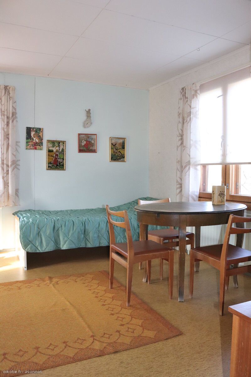 - Seinät maalattua lastulevyä (alla hirsiseinät), lattia muovimattoa.