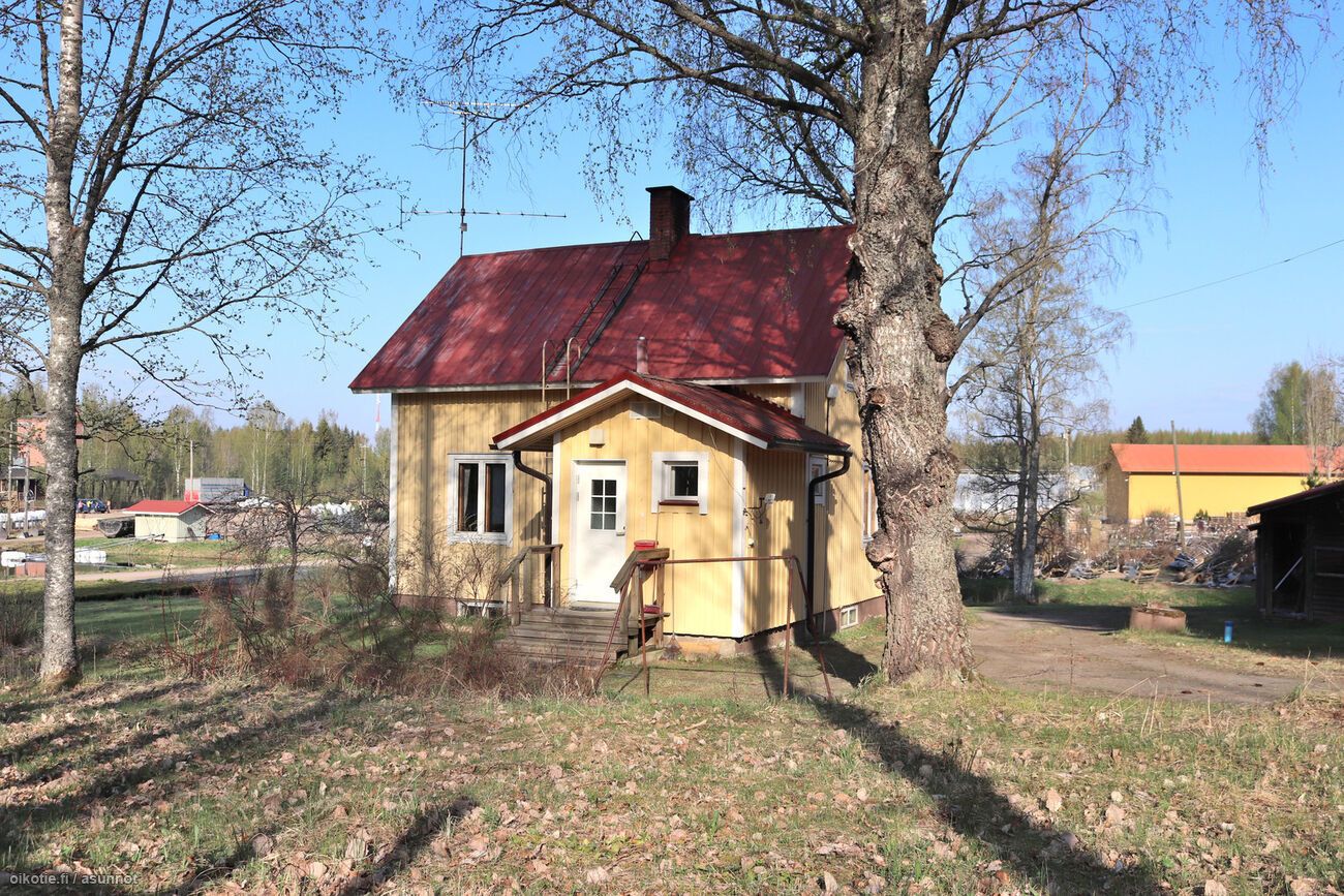 Pieni, hirsirunkoinen omakotitalo 2045m² tontilla Huutokoskella. Vuokra 420 € + kulut. Varaa esittelyaika ja tule tutustumaan!