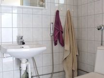 - Pesutilojen kuvaus: Kylpyhuone/wc rakennettu eteistilaan v. 2004. Laatoitettu, vesieristetty. Varusteena suihku, wc, peilikaappi, lattialämmitys, pesukoneliitäntä. .