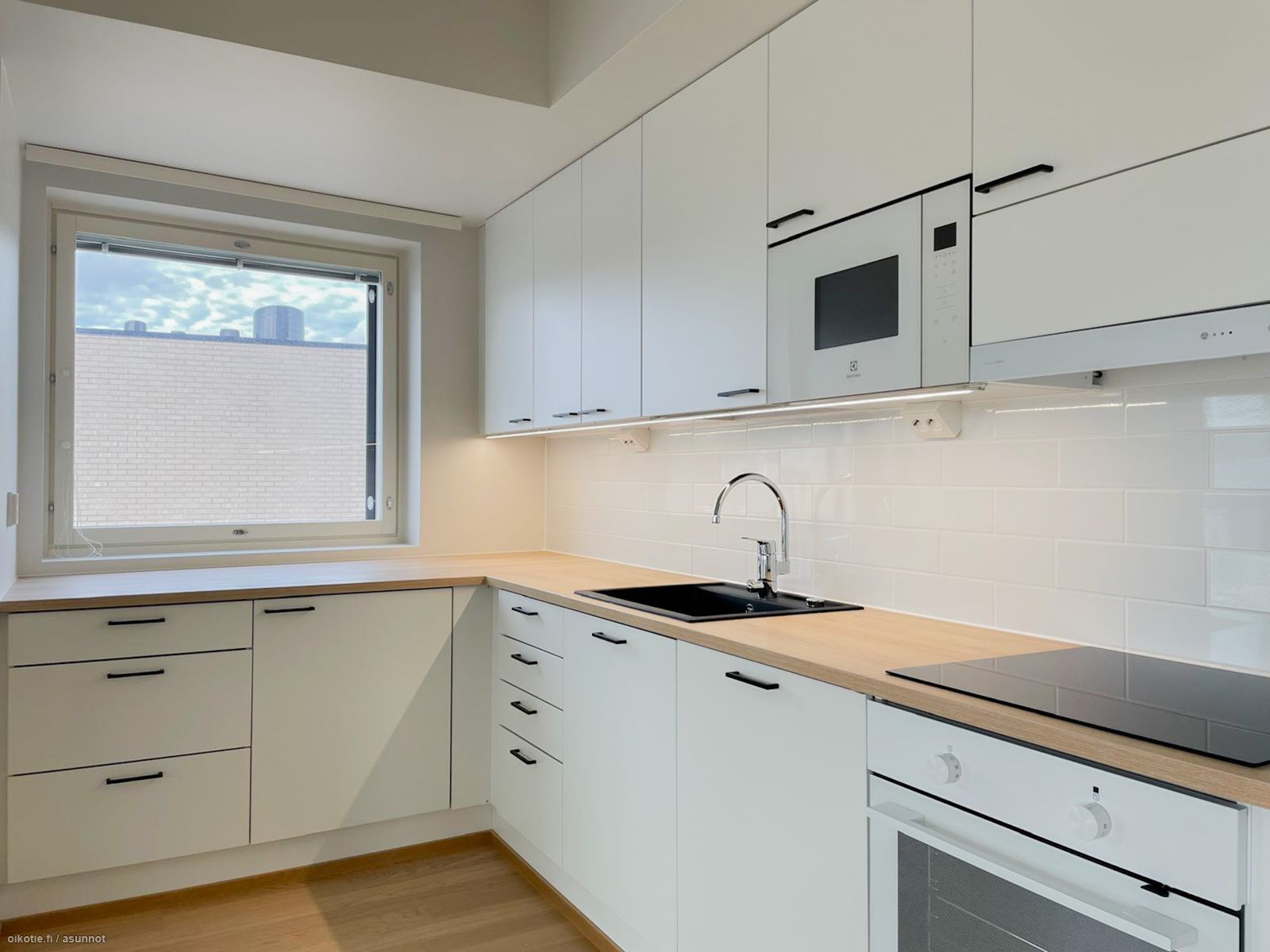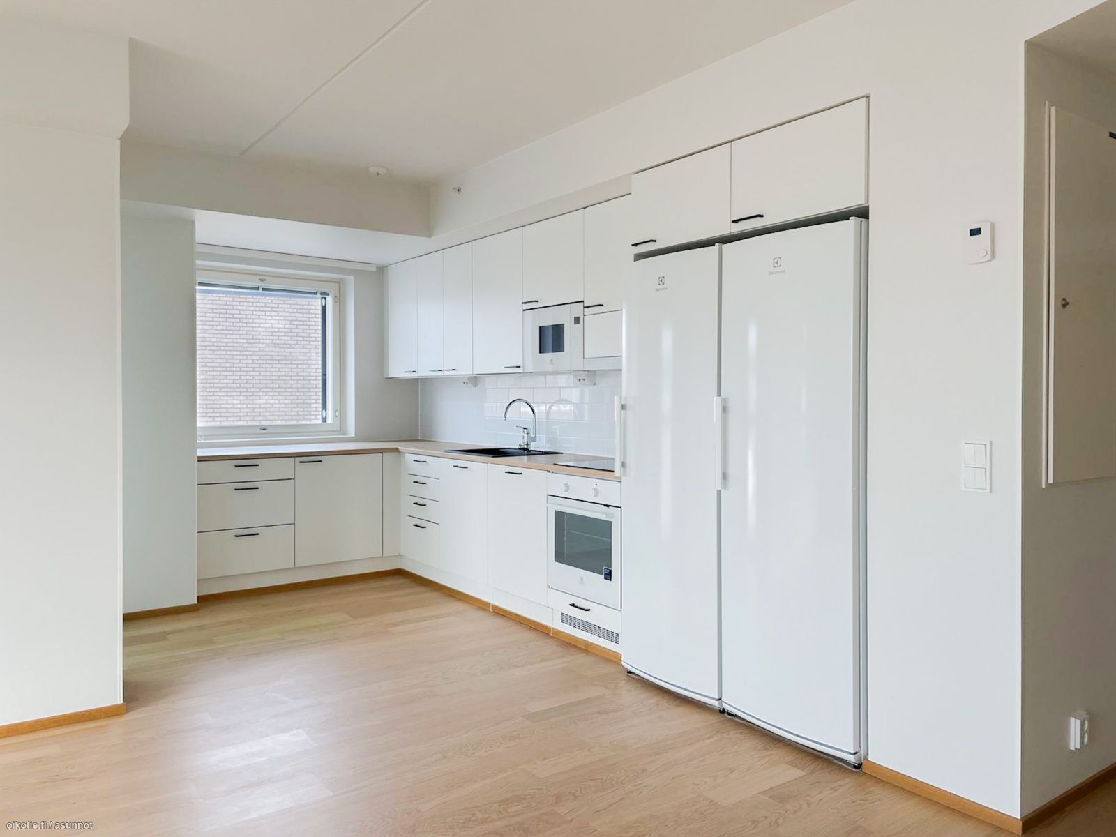 Vuokrattavissa upea yhdeksännen kerroksen kolmio. Avara tila sekä moderni keittiö. Keittiötiloista kulku tilavalle lasitetulle parvekkeelle. Asunnossa erillis-wc. Laadukkaat materiaalit ja tehokas pohjaratkaisu. Arjen ylellisyyttä tuovat lattialämmitys ja -viilennys. Taloyhtiöllä on vakiona 10M laajakaistayhteys.