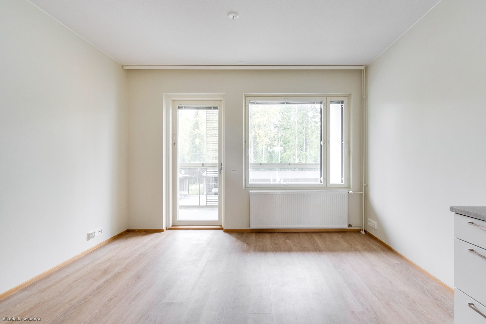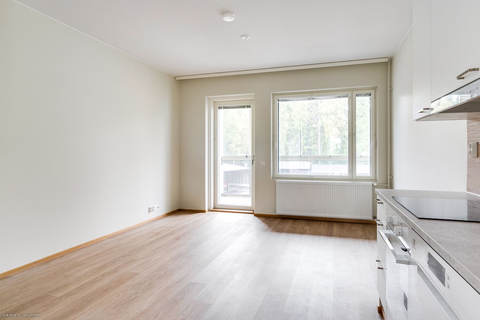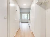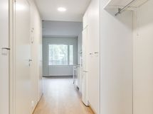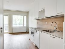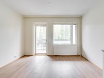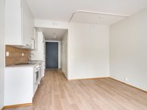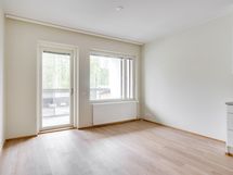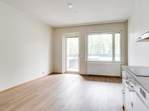 Asunnossa tilava olohuone, tupakeittiö, vaatehuone, kylpyhuone/wc, sekä lasitettu parveke.