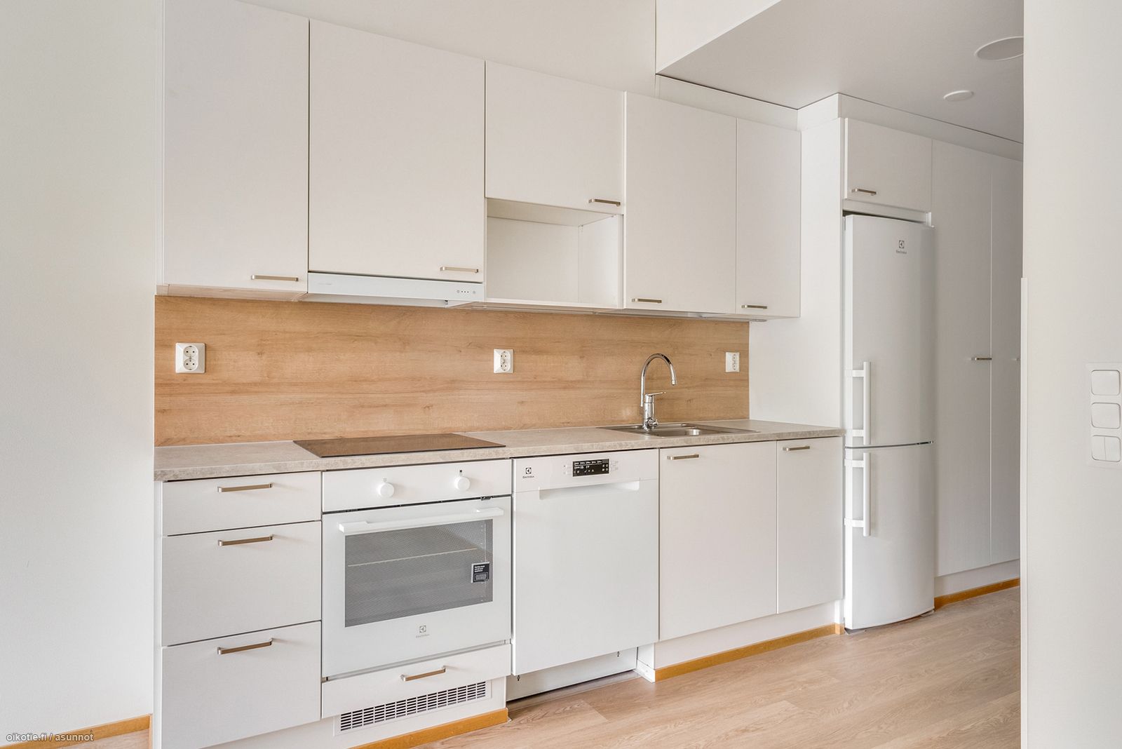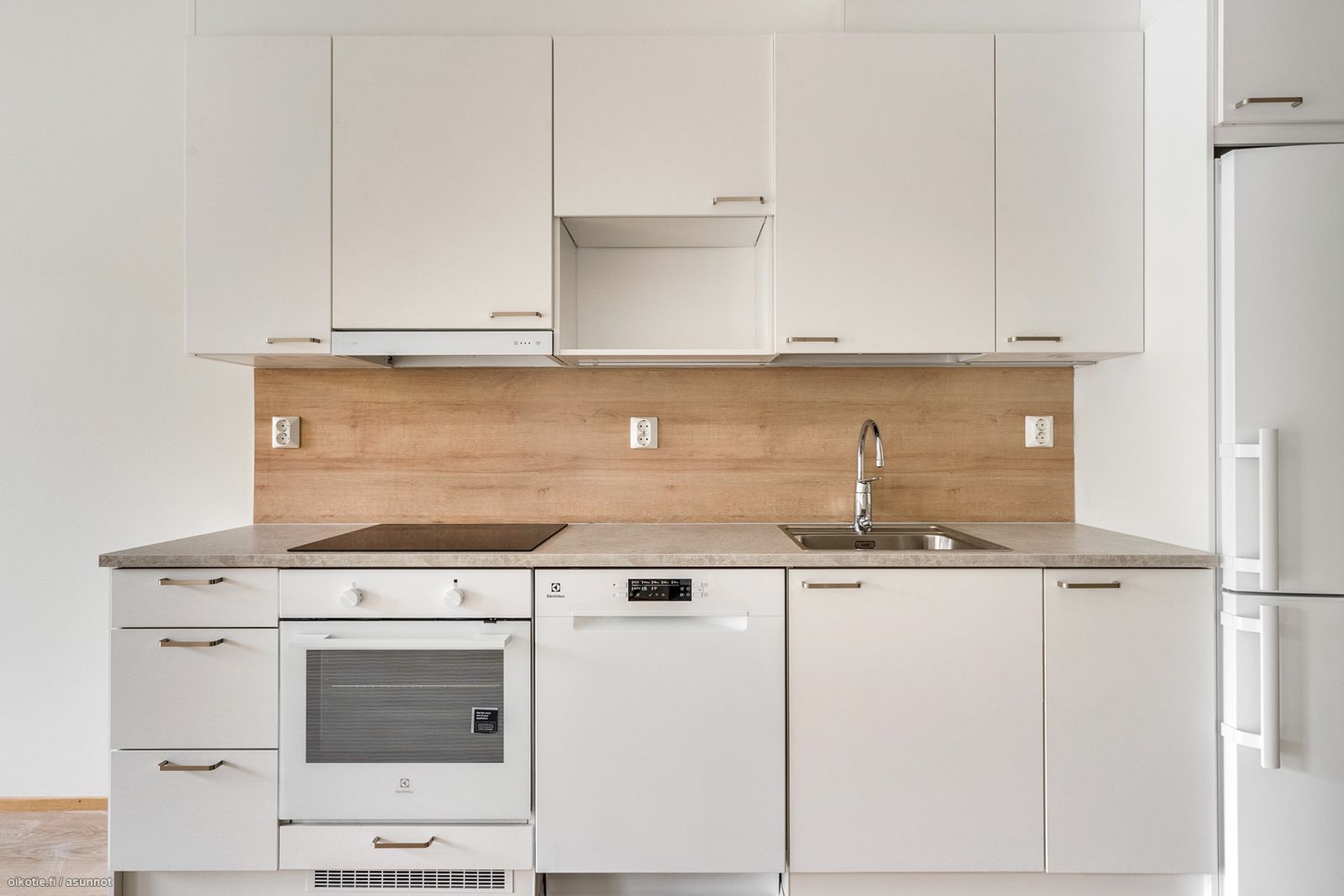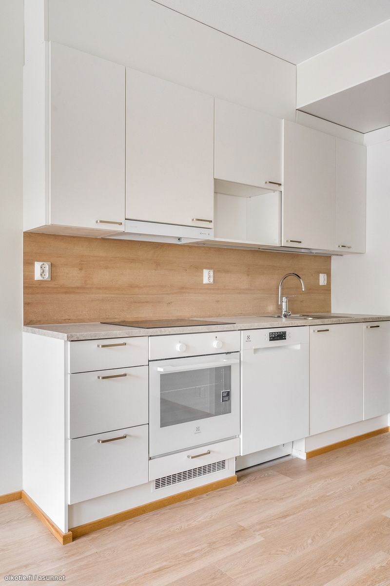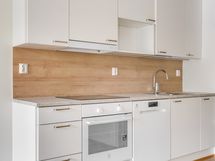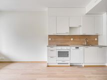 - Liesi: keraaminen, erillisuuni. Työtasot: laminaatti. Kylmäsäilytys: jääkaappi/pakastin. Varustus: liesikupu, astianpesukone.