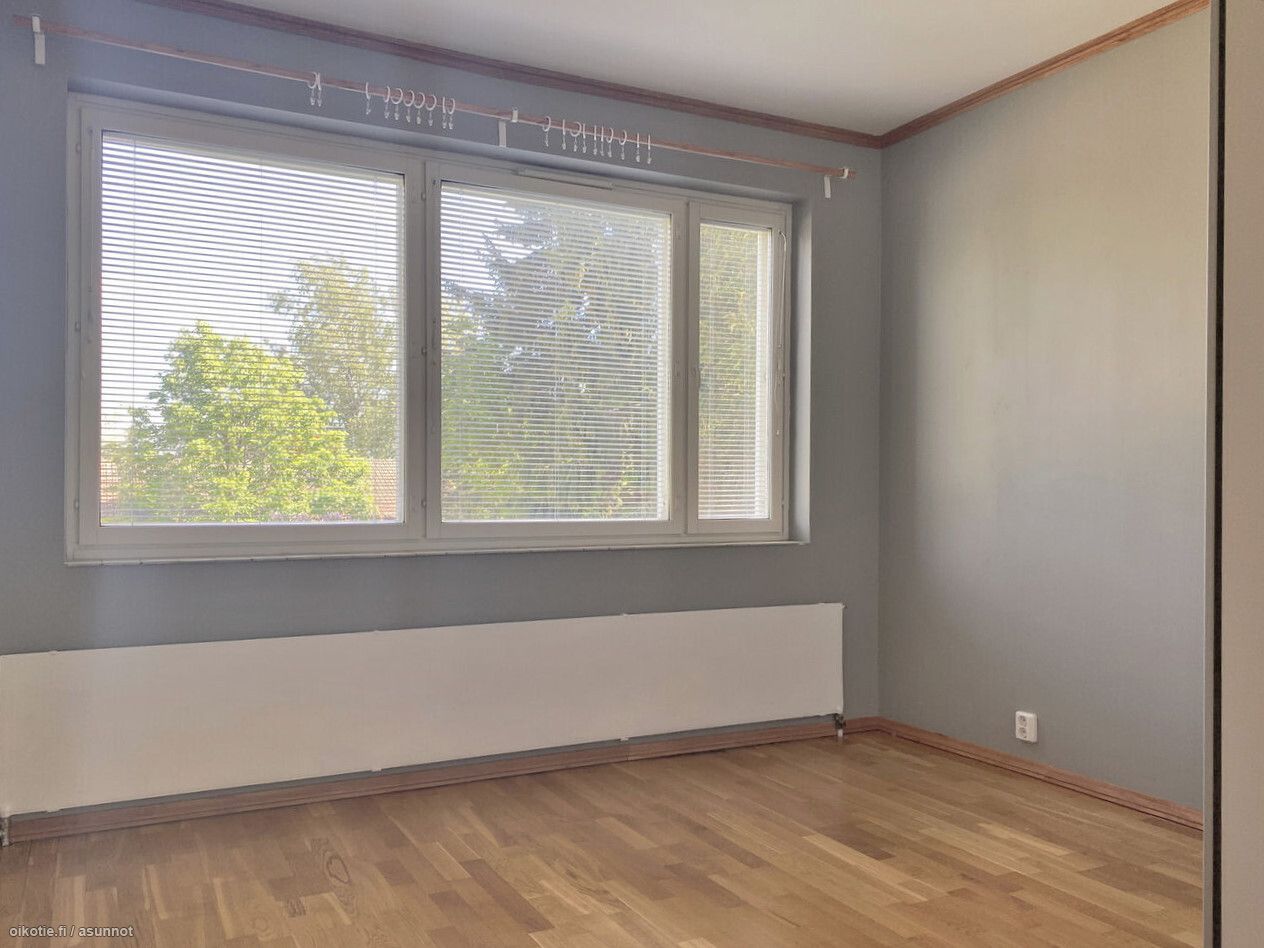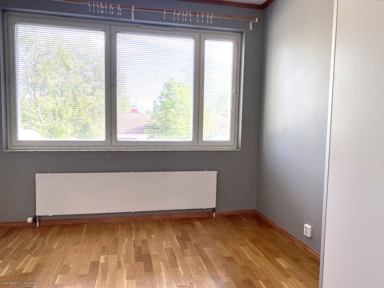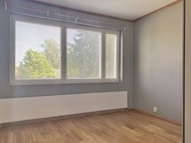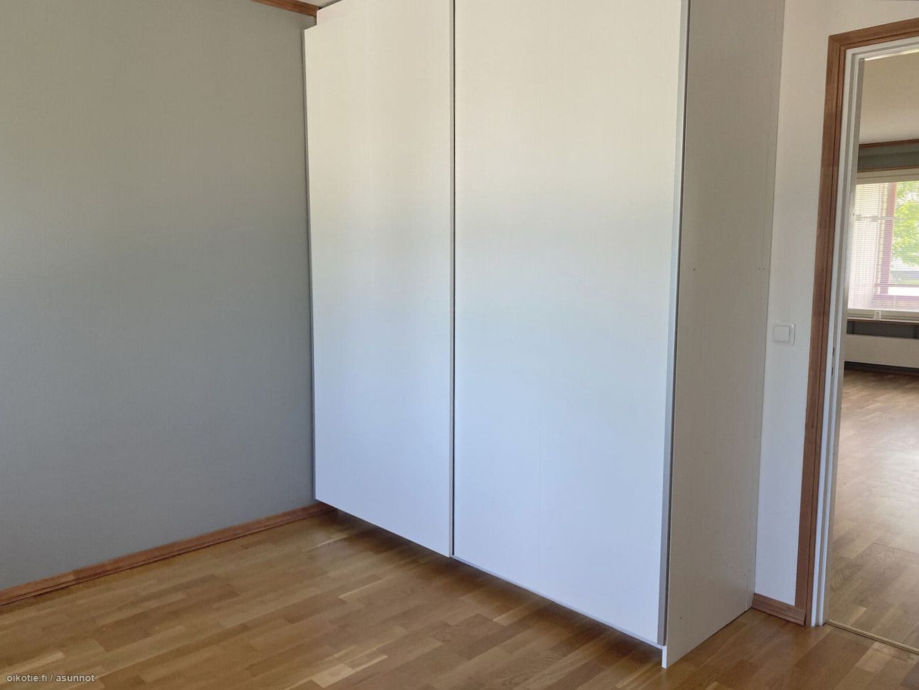 - Kaksi makuuhuonetta, molemmissa maalatut seinäpinnat ja lautaparkettilattiat. Kaapistoja,
