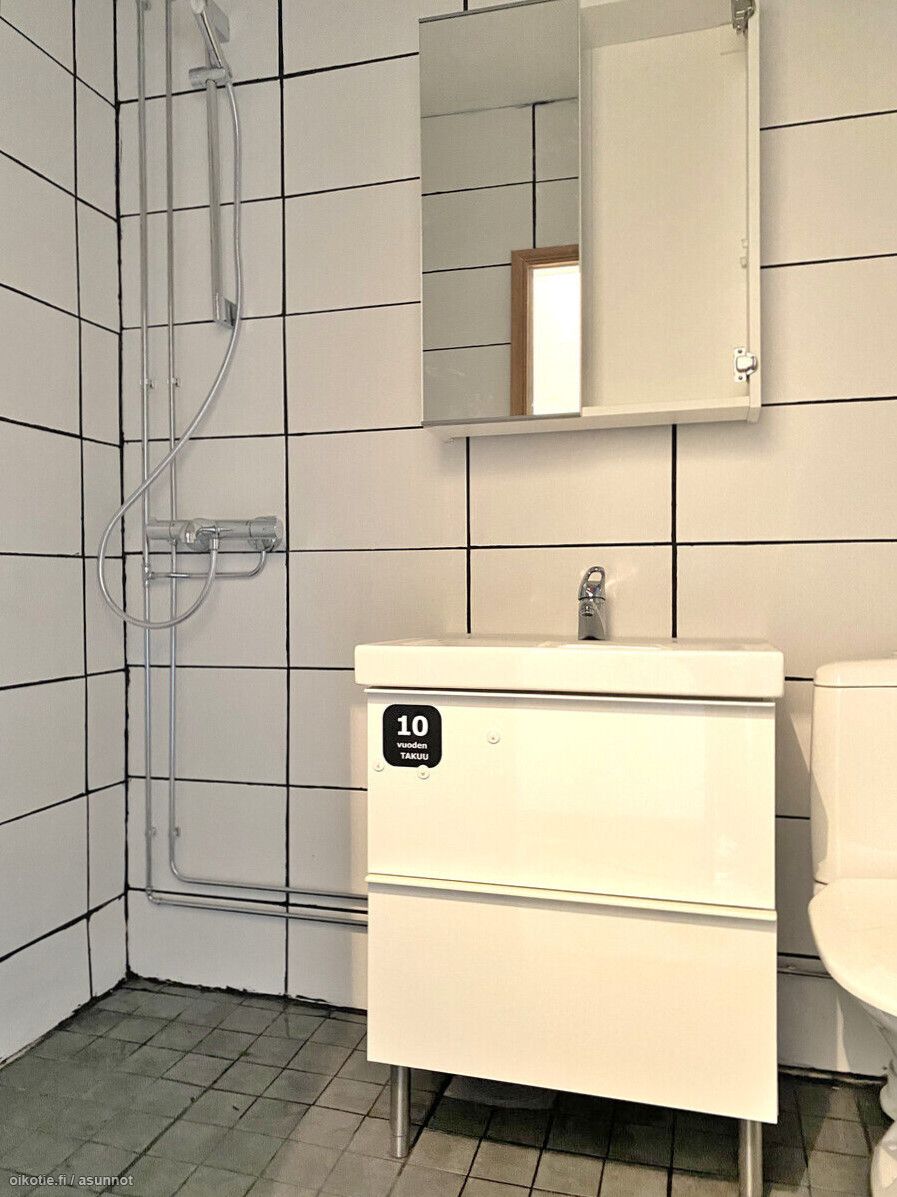 - Pesutilojen kuvaus: Kaakeloidut seinät, laattalattia. Varustus; suihku, wc, peilikaappi, pesukoneliitäntä.